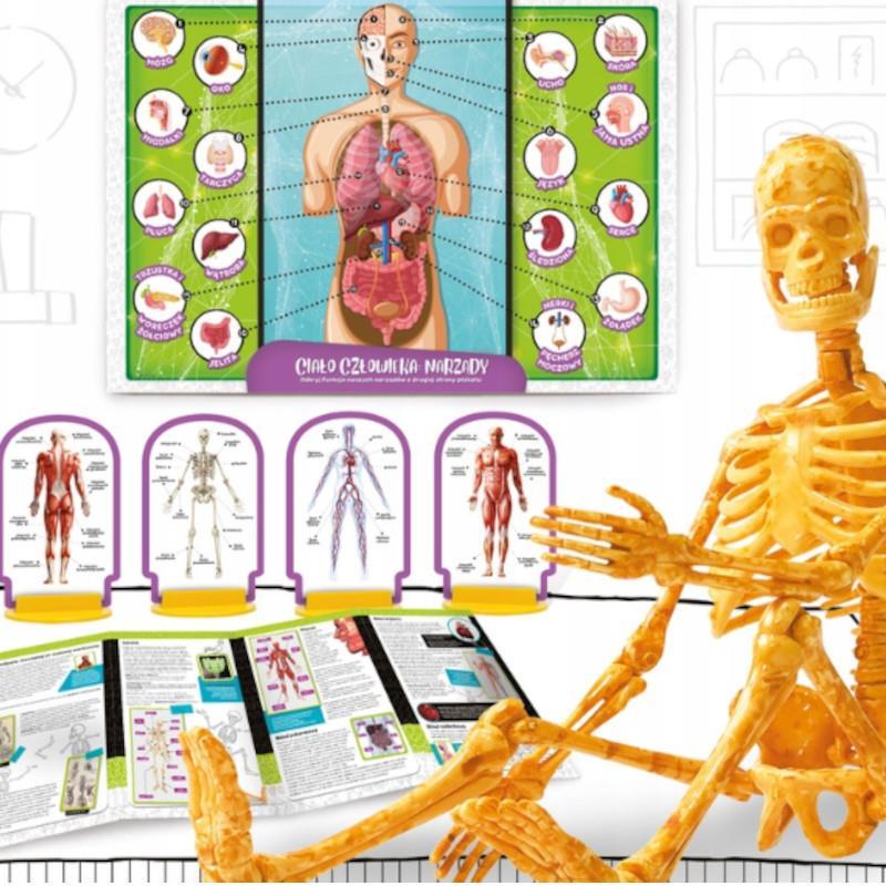 Ten niezwykły zestaw umożliwia młodym naukowcom odkrycie sekretów ludzkiego ciała dzięki realistycznemu modelowi szkieletu, który po złożeniu należy umieścić na specjalnej podstawce.